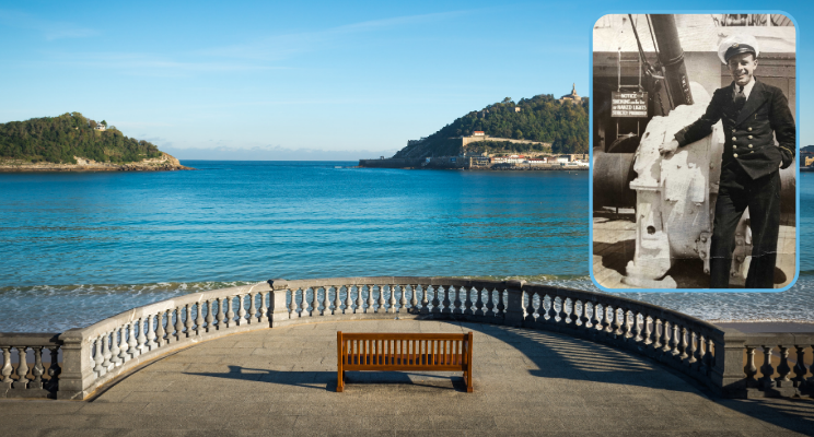 Inset Image: Grandad, Stanley Lucas on board one of the many ships he sailed on during his Merchant Navy career