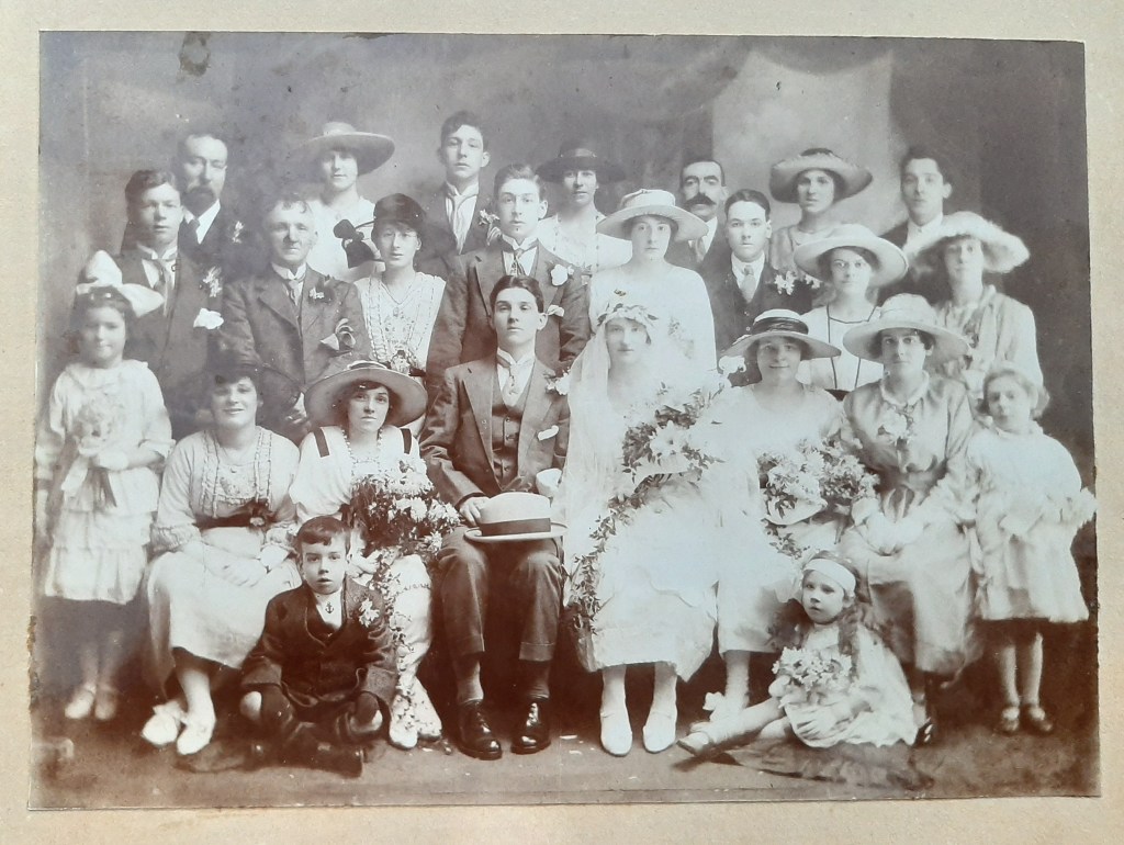 Michael shared with me copies of two Foster family wedding photos from 1920 and 1921, including the names of many of the people in the pictures. That is a big win! These photos show my grandmother Frances as a 7 year old girl, and her sister Cecilia as a 3 year old, as well as their parents – my great grandparents, Robert and Frances Foster (nee Hornby), 2 x great grandparents, Albert Edward and Ceclia Foster (nee Thomas) and other aunts, uncles and cousins.